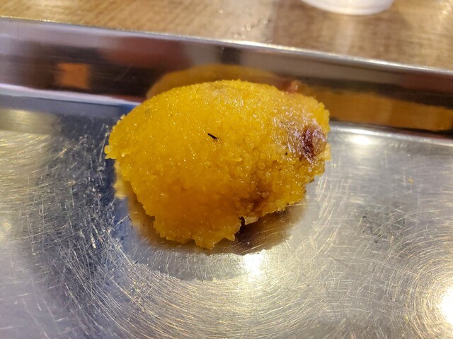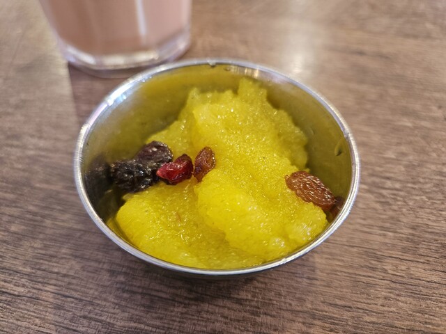 デザートはケサリバット。セモリナ粉で作ったお菓子で、レーズンが入っています。