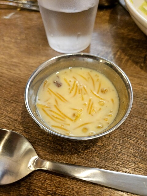 お米をミルクで煮込み、コンデンスミルクで甘く味付けされたインドらしいデザートです。口の中が一気に甘くなりました。