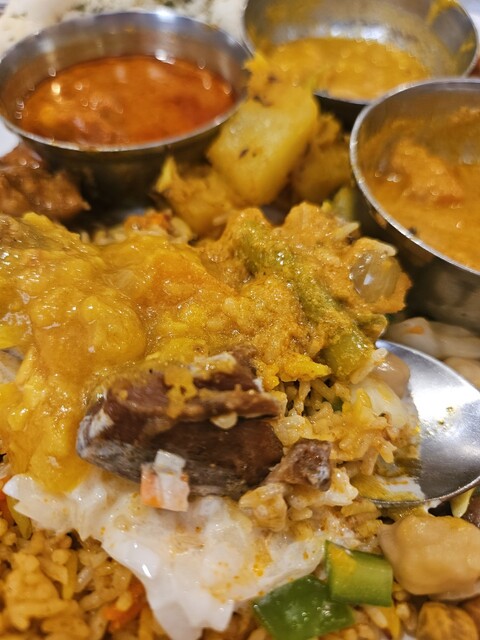 自分好みに少しずつ混ぜながら、食べ進みます。この味の変化を楽しむのも、ビリヤニの美味しさの一つ。