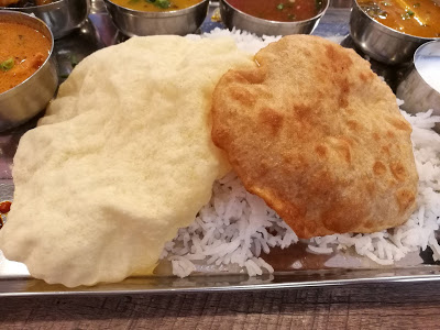 プーリとパパドに隠れていますが、とんでもない山盛りのバスマティライス。