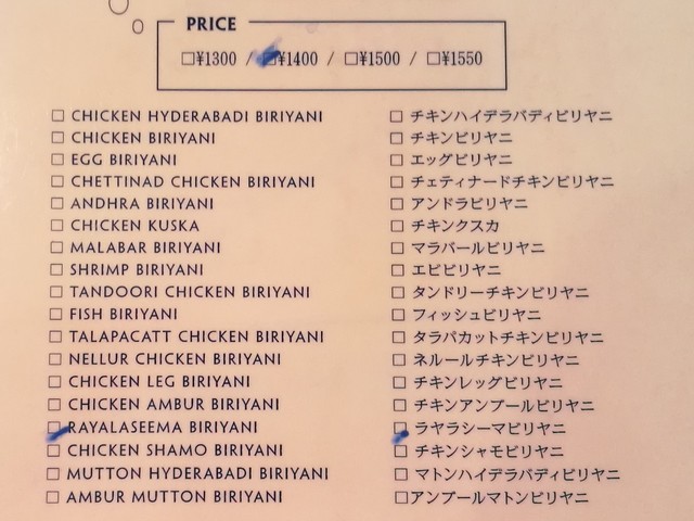 私は、もうビリヤニと決めているのでメニューを見るまでもありません。