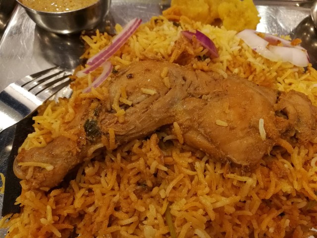 程なく出て来たチキンレッグビリヤニ。