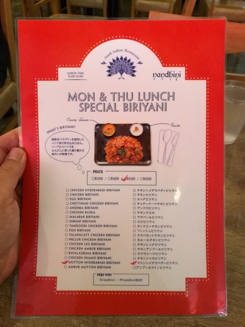 狙いは月木限定のビリヤニ。