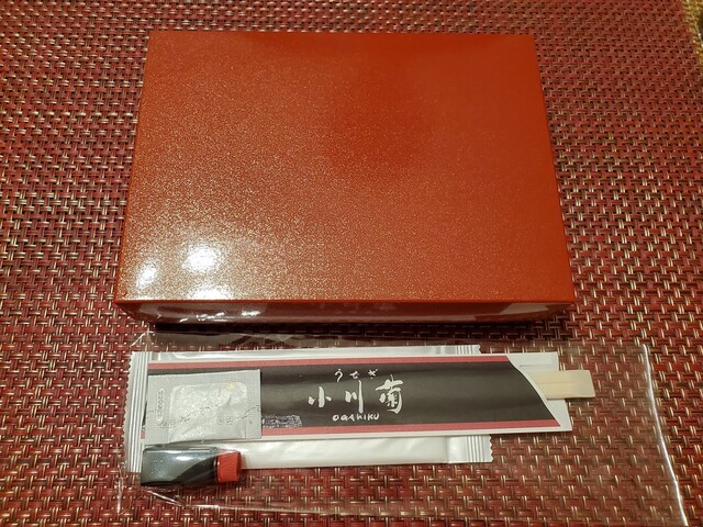 予約したのは、3,300円のうな重。焼き上がりまでは30分ほどかかりますので、予約しておくとすぐに受け取れてとても便利。電話の応対も、当日の受け渡しも、有名店の気取りがない好感の持てるもの。現金だけだと思っていましたが、幸いPayPayも使えました。老舗鰻屋にも、時代の流れ。