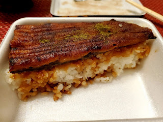 ご飯は、深めのお弁当箱にみっしり。これは相当なボリュームです。まだほのかに温かかったのですが、少し電子レンジで温めたので、出来立てのようになりました。カリっと焼かれているのに、中はふんわり。お弁当箱で蒸されても、きちんと本来の食味食感を残しています。タレはやや濃い目ですが、ご飯が多いので丁度いいバランスです。息子は「ご飯が多いから、もう少しご飯にもタレがあると良かったな」と言っていましたが、それは各自の好みでしょうか。確かに追加でかけられるタレが付いていれば、尚良かったかもしれません。