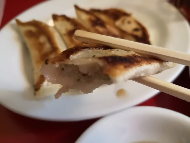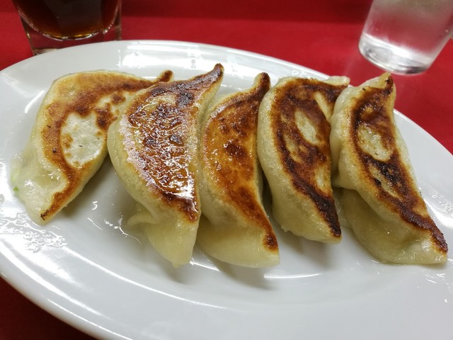 注文を受けてからお母さんが一つずつ丁寧に包んでくれる餃子は、実に美味。