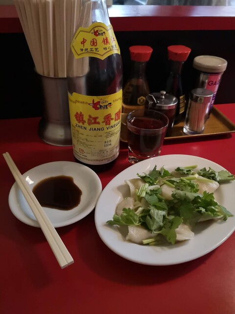 香菜のせ水餃子を香醋で頂くのが、私のルーティン。