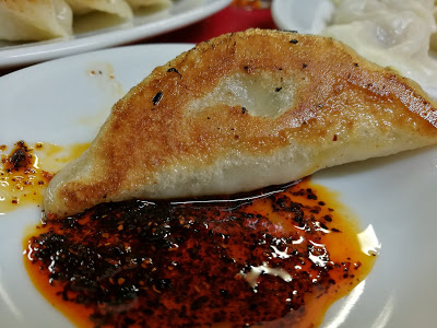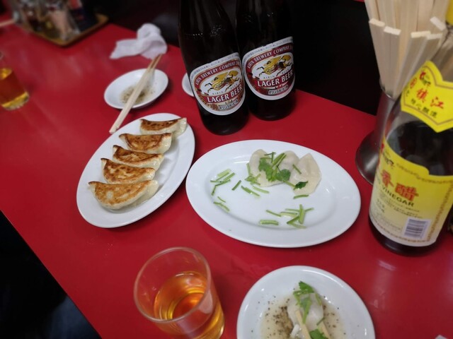 キャノンデールのB級食べ歩記: 立石新春はしご酒の二軒目は餃子の店「蘭州」。水餃子と焼餃子を紹興酒で流し込むセンベロの一杯