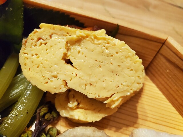 たまご好きの私が終盤まで温存しておいた大好物の出汁巻玉子に箸をつけます。実に優しい薄味で、出汁の味さえも控えめです。これは最高。
