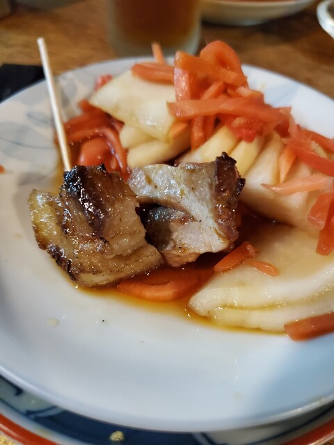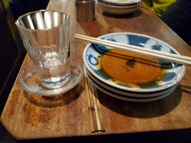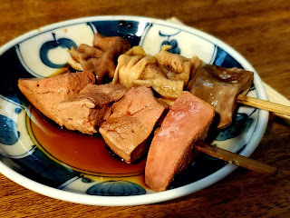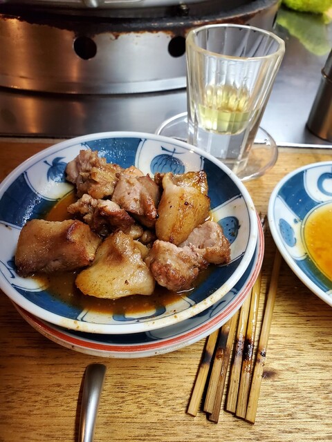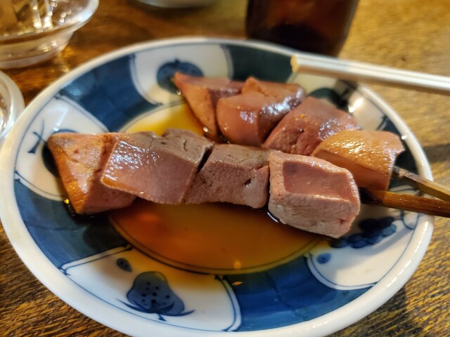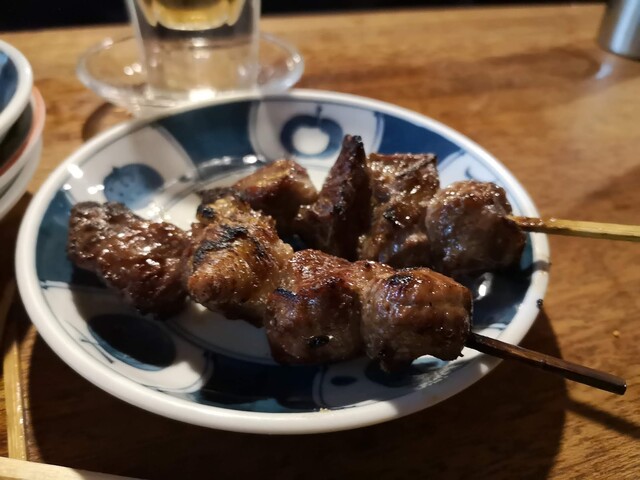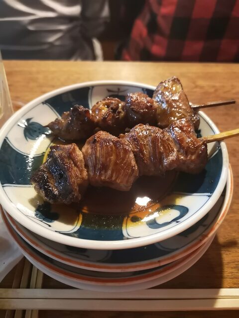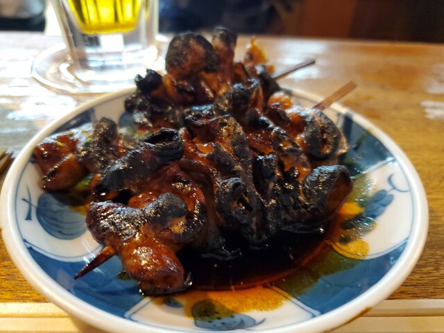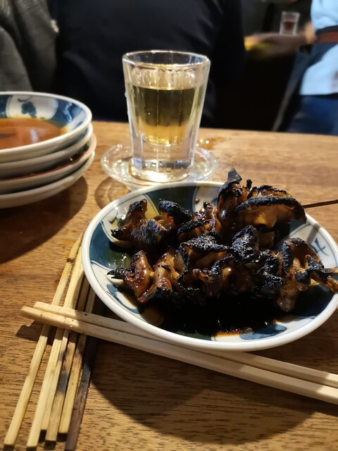 ハツ塩を頼もうと思ったら、タッチの差でヤマ。やっぱり先に頼んでおくべきでした。17時の段階でネタはレバ、ガツ、アブラ、シロの四種類。やはり16時半頃が潮目のようです。シロタレやく焼きを頼みます。