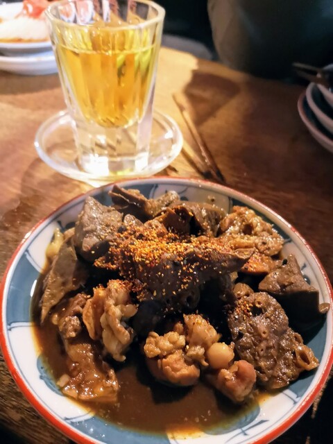 ゆっくりと煮込みと生を楽しみながら、梅割りは二杯目。