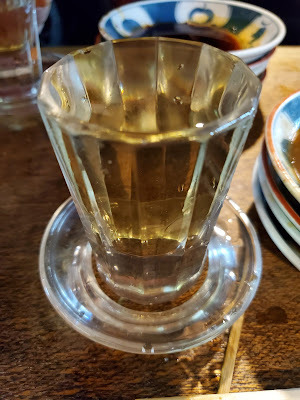 最後は梅割り半分を甘めで。半分といっても、零さないだけなので事実上の一杯。この後もう一軒狙っているので、今日の宇ち多”はここまでとします。