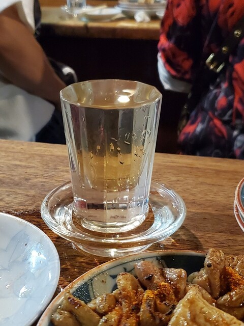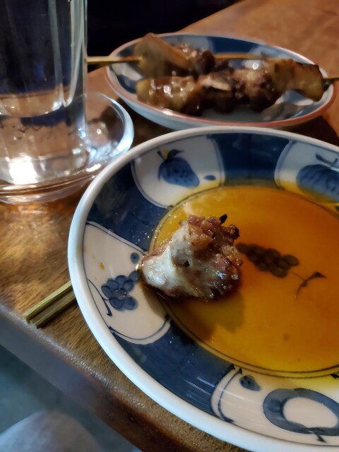 二杯目に合わせて頼んだ串焼きも出て来ます。今日はレバ素焼きとシロタレよく焼き。