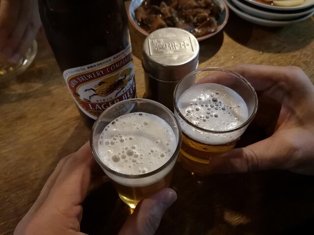 ビールの小瓶を頼んで、とりあえず乾杯です。