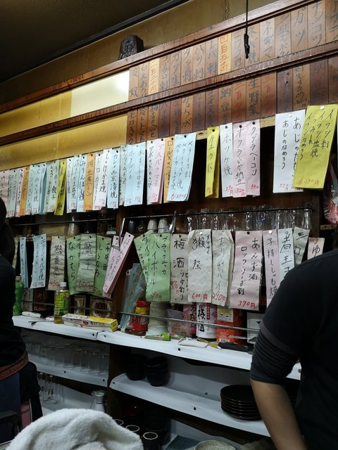 暖簾を潜って店内へ。辛うじて空いていたカウンター席に身体を滑り込ませます。地元のご常連で相変わらずの賑い。