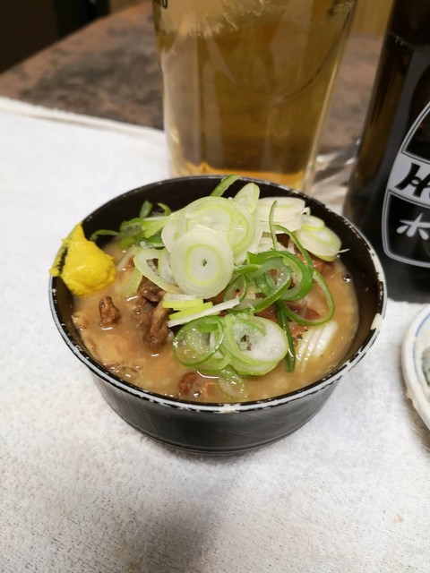 一番最初に頼んだもつ煮込みが、催促してようやく出てきました。これもこの店の「あるある」。