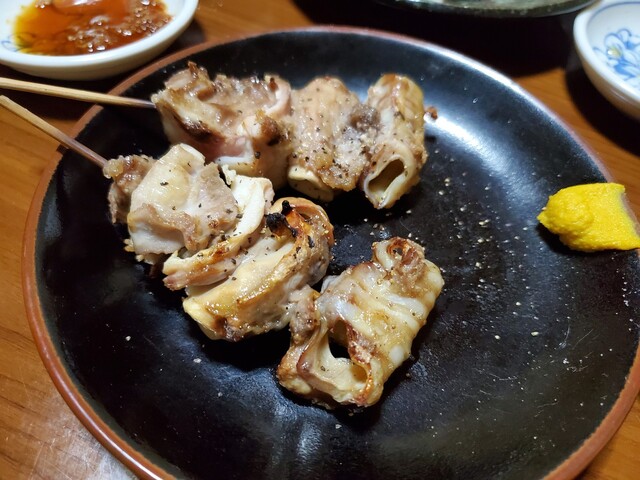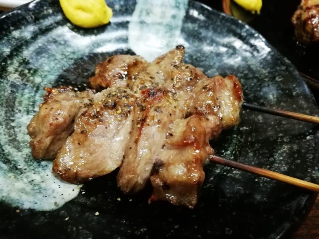 串焼きに展開。最初はハツ塩。一切れのサイズも大きく、プリっとした食感がナイス。