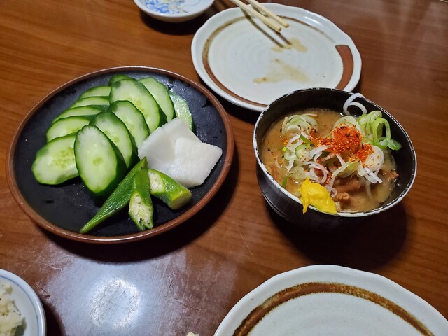 先日長男が友人と飲みに来た時はお母さんがいなかったと聞いて心配したのですが、今日は元気そうな顔が見れて安心しました。お母さんの自家製ぬか漬けをオーダー。もちろん卓上の味の素をマシマシにするのがルーティン。