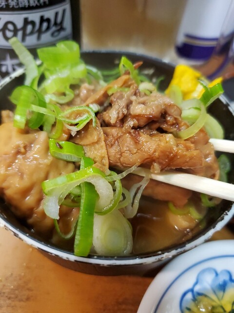 しっかり味噌味の滲みたもつ煮にホッピーが進みます。