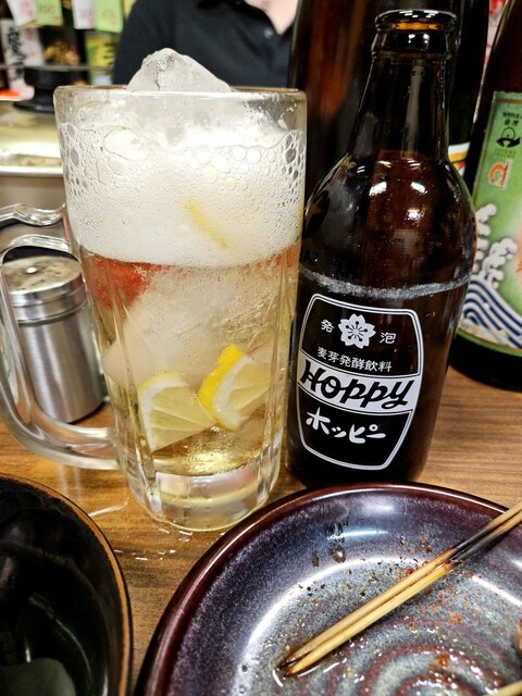 カウンターの一番奥に座り、まずはホッピーで喉を潤します。