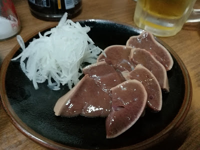まずは刺身から。タン刺しとレバ刺し。鮮度と処理の良さは、相変わらずです。
