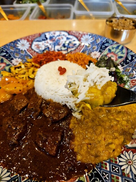 まずはセンターのバスマティライスとジャスミンライスにスプーンを入れます。