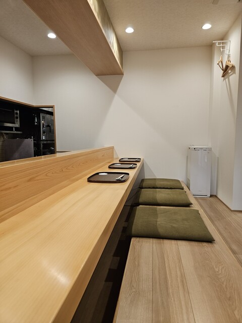 カウンターに案内されました。奥には個室もあり、京の町屋らしく間口の割に奥行きのある造り。開店して12年経つお店とは思えない新しさを感じます。