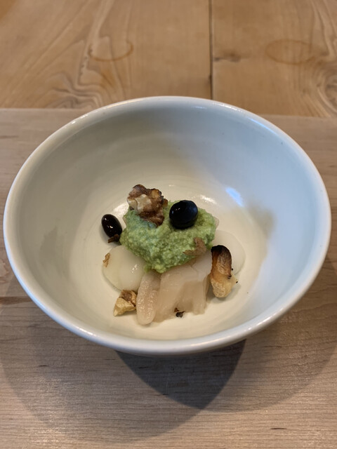 ずんだ・黒豆・湯引いた帆立・クルミ・白玉」