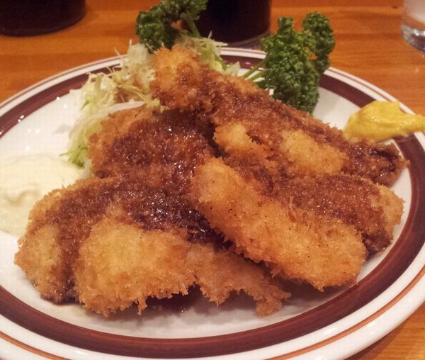 それはさておき、今日の根岸家は岩がき(580円)があった。これがでかすぎて写真に収まらなかった。きんめだいさしみ(580円)はとてもキレイなピンク色で、味もそれに似て淡い色を感じた。こはだ酢(330円)も美しく並べられ、見ただけで楽しめた。きんめかぶとは本来は700円だったが、小さいのしかなかったため500円にしてくれた。こういう心遣いがこの店のよいところなのだ。