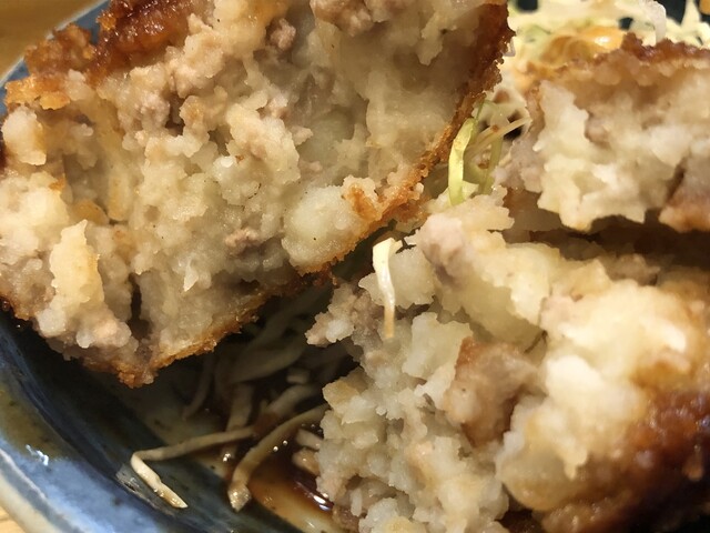 コロッケも必ず食べたい。厚みがあり、揚げたてでおいしい。