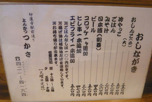 妙蓮寺は鳥ひろがずっこけてしまったので、このとんかつつかさにはまだまだ頑張ってもらいたい。
