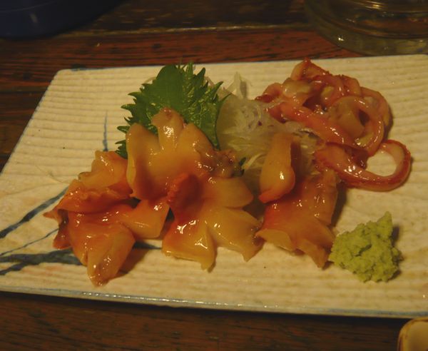 「今日は赤貝があるよ」と他の客に勧めているおっちゃんの声を聞き逃さなかった。すかさず「はーい。食べます」と注文。ここで赤貝を食べるのは初めて。さすがに新鮮である。ヒモも付いてる。これで800円だから安い。