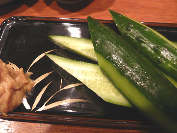 最初は土曜日。夜7時ごろだったと思うが、かなり混んでいた。入って左側が10席弱のカウンター席、右側がテーブル席、奥が小上がりになっているようだ。小上がりのほうは家族連れがいるらしく、子供の声が賑やかだ。カウンター席は空きがあり滑り込むことができた。