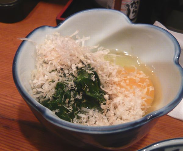 もつ煮込みは、普通の煮込みで、大根とコンニャクが入っているが、大倉山のモツヤほどのよさは感じられない。ビールから熱燗に切り替えた。納豆おろしは日本酒に合った。