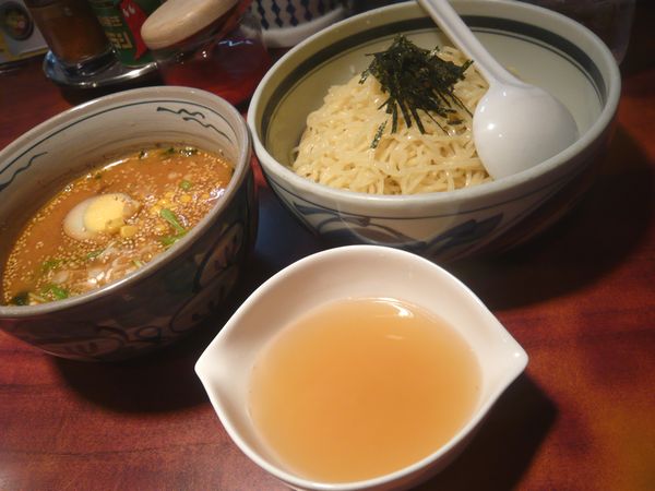 つけ麺にチャレンジ。醤油味と味噌味がある。味噌味にする。麺は冷し中華同様大盛りでも同じ値段。味噌のつけダレは、普通の味噌麺の汁を濃くしたような味。これなら温かい味噌麺のほうがずっといい。