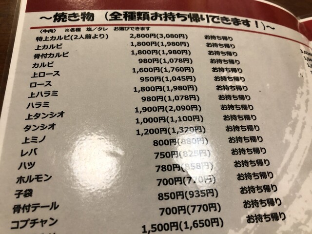 特上カルビ(3,080円)というのもあるが、2人前よりとなっているので、ひとりでは頼めないが、上カルビでこれだけの脂、特上カルビだと脂だらけになるのではないか?