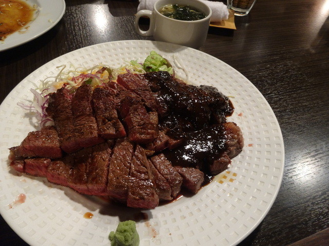 小生は2.5枚(450グラム ほぼ1ポンド)を味噌とワサビ醤油でお願いしました。