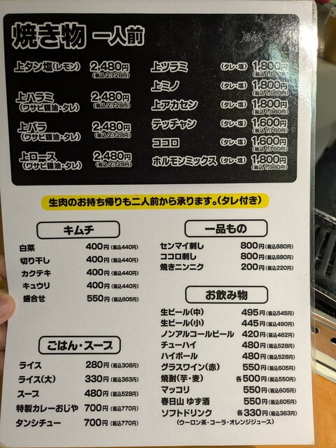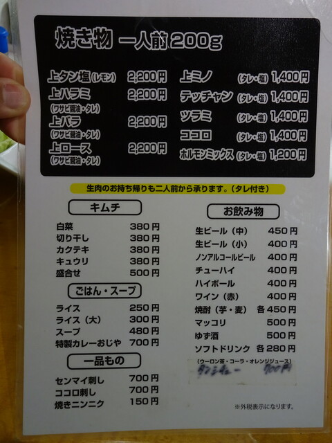 価格は高く見えるかもしれませんが、1人前は200グラムなので一般的な焼肉店の1人前に比べると2~3倍はあります。