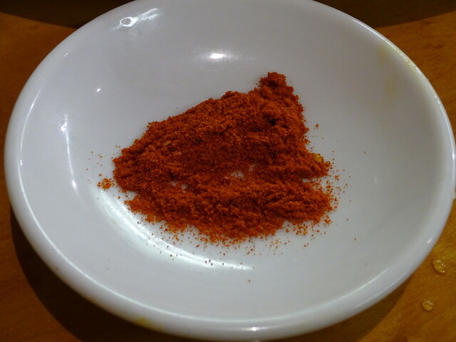 そして一緒に出される赤い粉、焼いてからつけて召し上がってくださいということですが