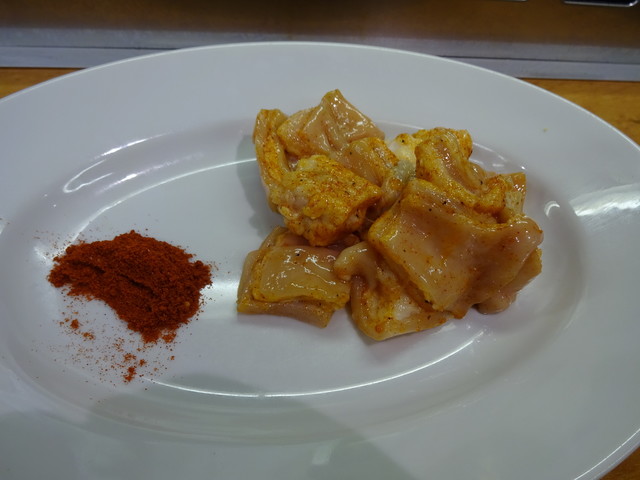 どんなもんでしょか・・・(^0^ )パクリ もともと臭みなんて感じませんが、赤い粉が良く効いています。