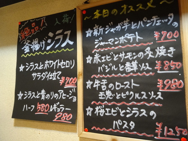 定番メニューが壁に張り出され、黒板には本日のおススメもしっかり~