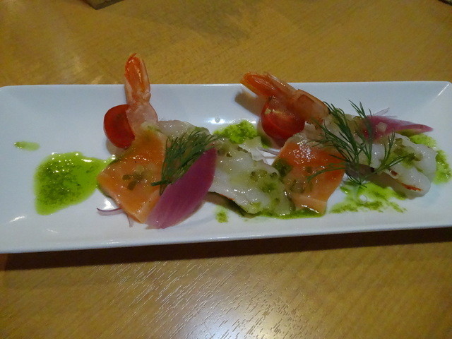 プリップリの海老にサーモンを、さきほどのタタキとは違ったソースでこれまた( ゚Д゚)ウマー