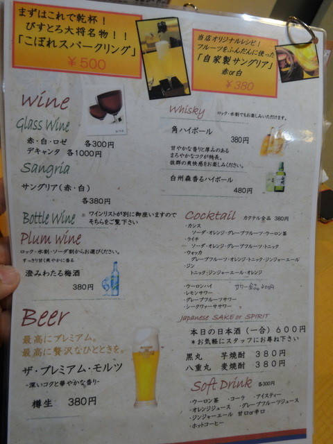 ドリンクも「名物こぼれスパークリング」をはじめ、ワインから日本酒、焼酎まで幅広く取り揃えており、