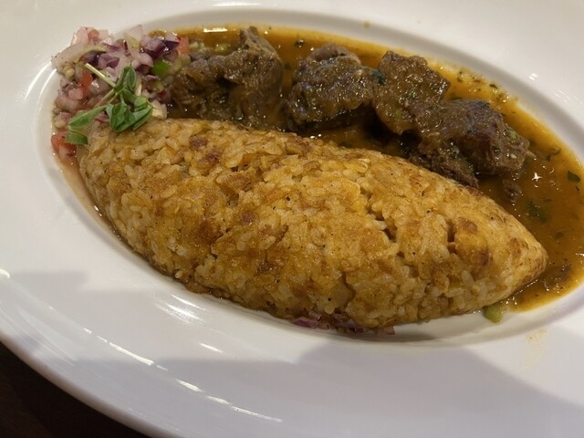 ラム肉は、脂身のないさっぱりとしとしたお肉ながらも、ホロホロになるまで煮込まれているほど柔らかく、肉そのものが美味しいわね一度炭火で焼いたような香ばしさもあったわ!
