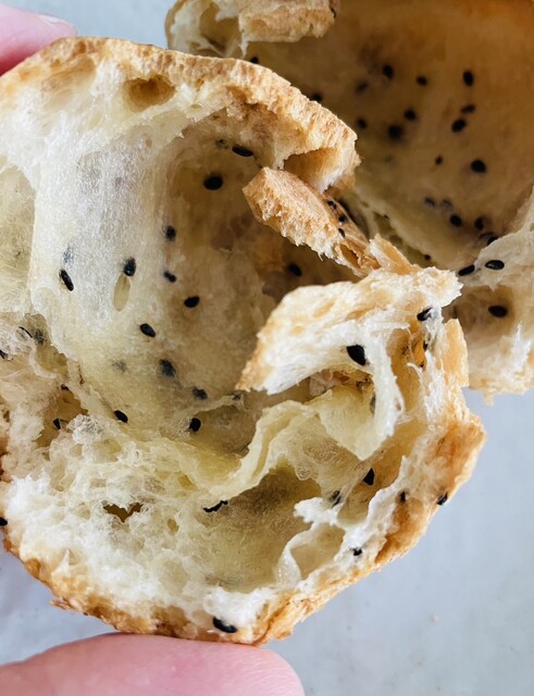 ゴマもちパンの中は空洞。パリっとモチっと。くせになる食感です。