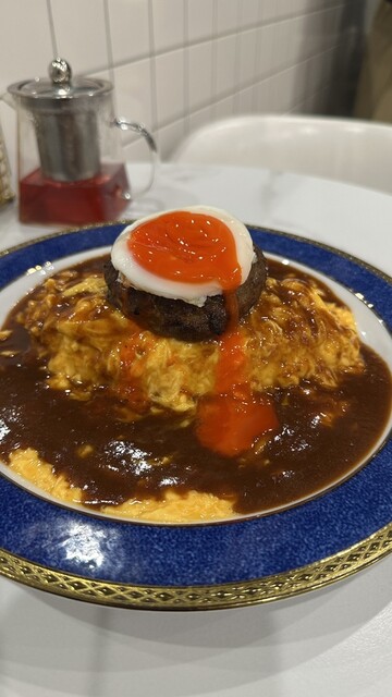前回バスクチーズケーキを食べに来た時に、隣の方が食べているオムライスのデミグラスソースの香りが美味しそうで忘れられなかったのですぐに再訪!