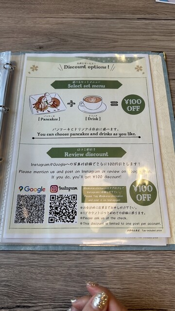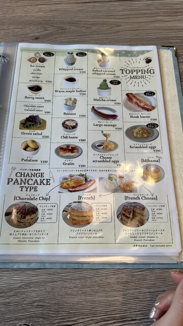 メニューがたくさんあり、甘いのにするかご飯系にするか悩みましたが、可愛い店員さんにおすすめされた京都限定の「柚子香る抹茶パンケーキ」3枚にする事に!