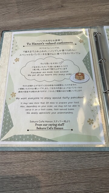 ふわふわのパンケーキは、焼き上がりまで20分くらいかかりました。