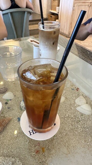 沖縄らしいオーシャンビューのオシャレな店内で、海を眺めながらのんびりお茶が出来るのは最高です。
