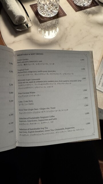 ティラミス、ブルガリ・スーパーレモネード、そしてカモミールティーを注文。